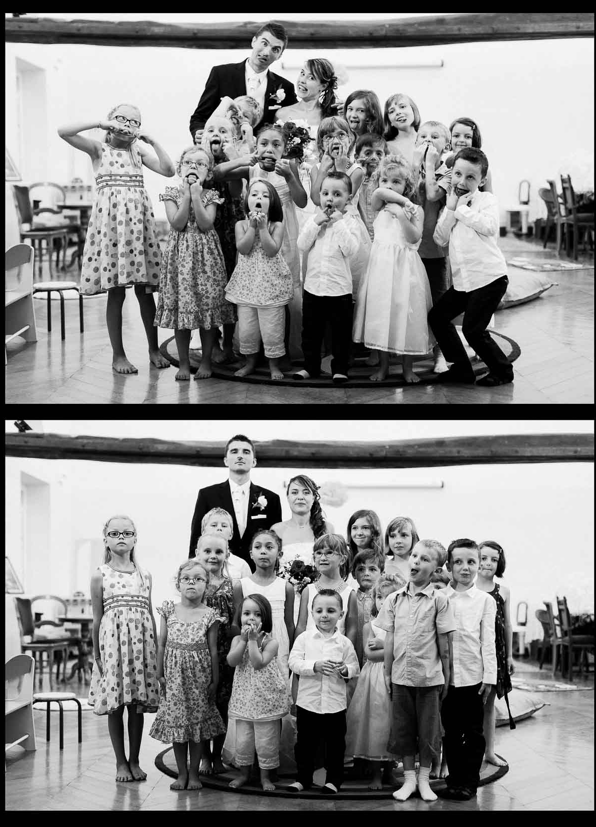 En plus des photos du bal d'ouverture et de la soirée dansante, je propose un atelier photobooth (mini-studio) autonome, avec un deuxième appareil photo sur trépied et une télécommande avec un retour sur écran, les mariés et invités viennent ainsi réaliser des portraits et autres photos plus "décalées", que ce soit en couple ou en groupe.